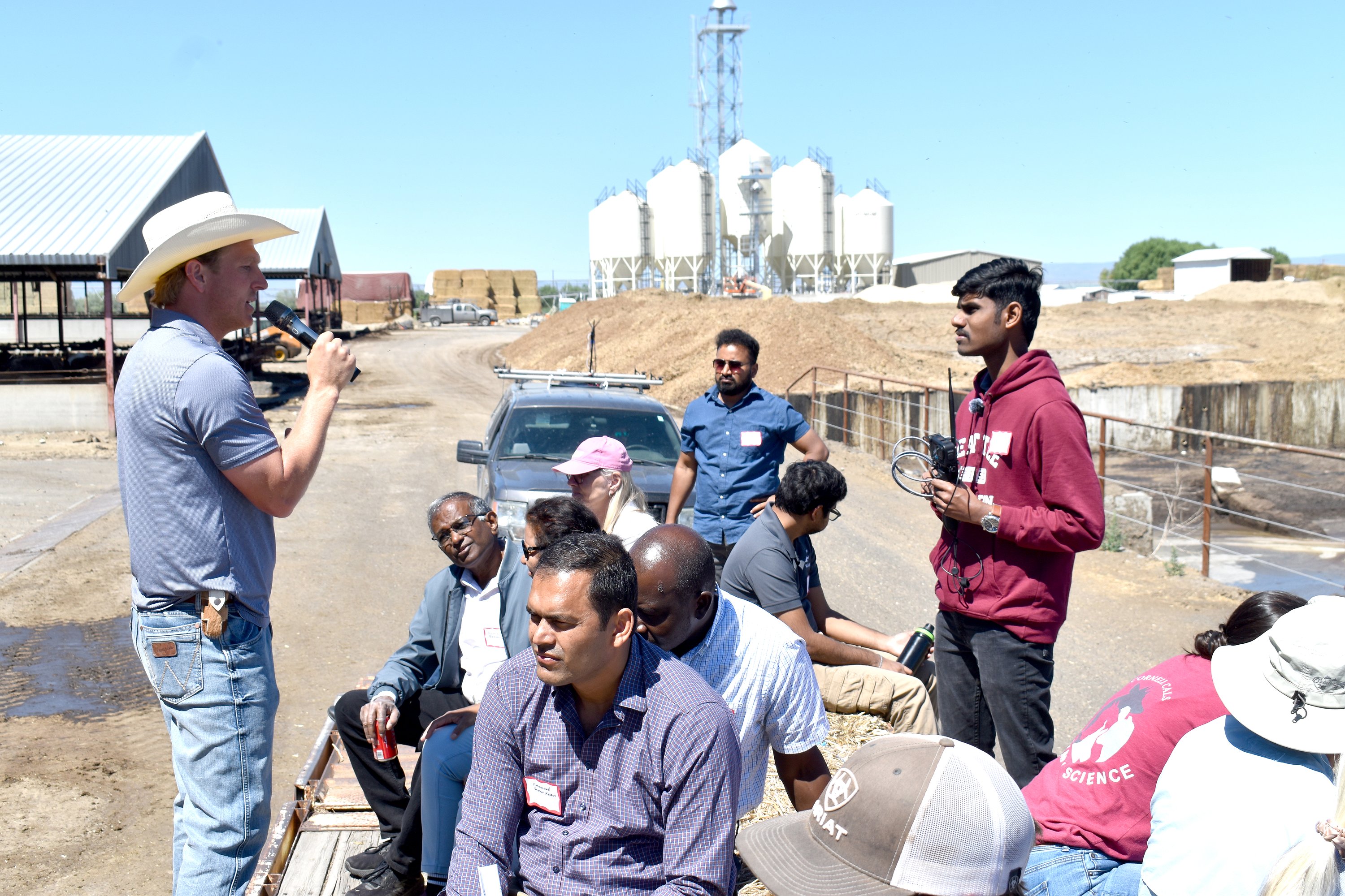 Hebdon drove the visitors around the farm on a flatbed trailer with hay-bale seats, while Royal Dairy owner Austin Allred explained what they were looking at. Besides the milking barns, feeding pens and other things typical of a dairy farm, guests got to see Royal Dairy’s “kitchen,” where the animal feed is made, and worm farm.