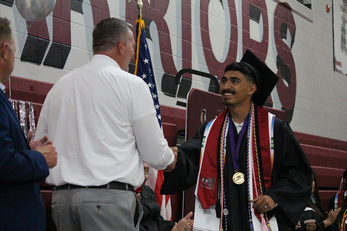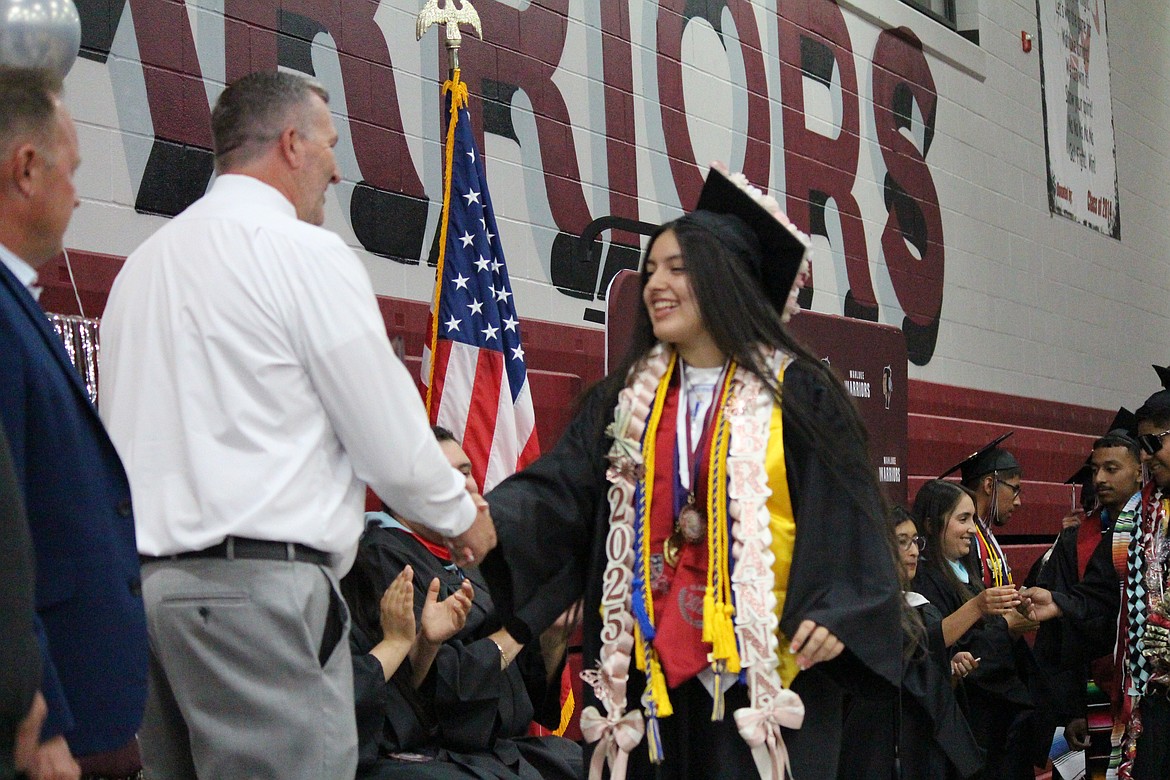 Salutatorian Stephany Elias also shed a few tears while paying tribute to her mom and dad and thanking the teachers, coaches and other adults who supported the seniors during their school years. For Elias, that included the district’s track and cross country coaches.