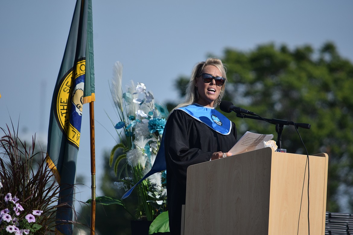 Keynote speaker Veronica “Ronnie” Roylance, a staff member known for her caring approach to students, shared insights about personal growth and resilience. In a candid address, she addressed the common uncertainties faced by graduates regarding their future paths.