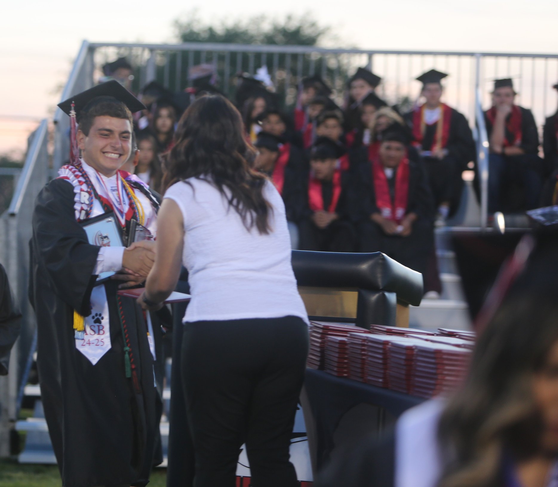 Student Body President Riley Rodriguez was up next to speak, but not before being welcomed with cheers and chants from his peers. Rodriguez was emotional throughout his speech, often holding back tears when thanking family and friends for their support during his high school career.