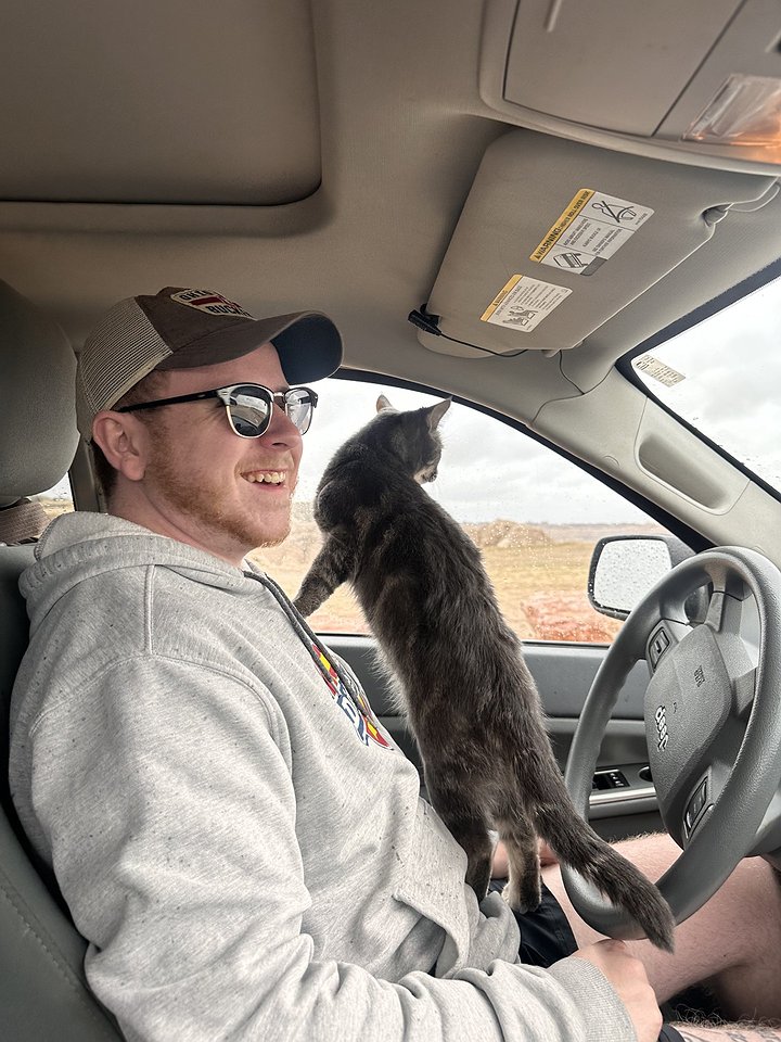 When he moved out west, he made sure to bring along his cat Cletus who he adopted in December and has grown very close to. Cletus is a gray tabby he describes as the sweetest cat ever who can also be a troublemaker.