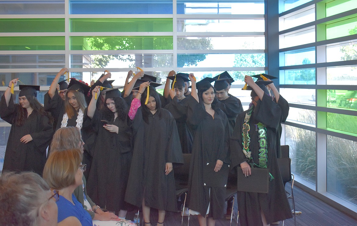 MOSES LAKE — It was a short walk across the room, but for the 34 students who graduated from Open Doors on Thursday it was the end of a long journey.