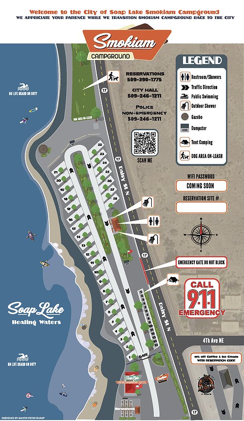 For reservation inquiries, visitors can reach the campground directly at 509-390-1775 or call the City of Soap Lake at 509-246-1211. Sharp said online booking options will be coming soon. With daily rates around $49, Smokiam promises to be an affordable option for those seeking a camping spot in the heart of Soap Lake, Sharp said.