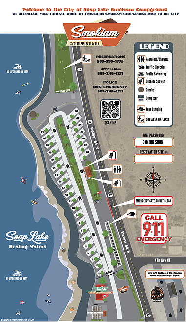 For reservation inquiries, visitors can reach the campground directly at 509-390-1775 or call the City of Soap Lake at 509-246-1211. Sharp said online booking options will be coming soon. With daily rates around $49, Smokiam promises to be an affordable option for those seeking a camping spot in the heart of Soap Lake, Sharp said.