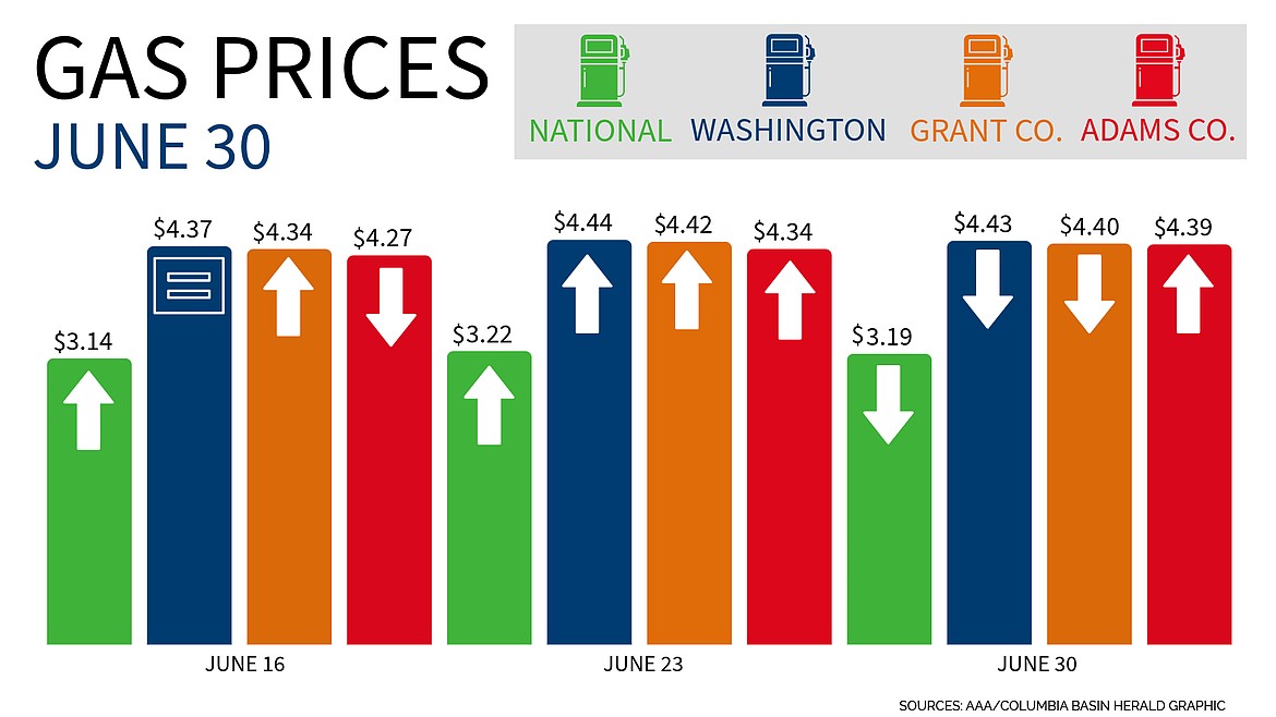 MOSES LAKE – There was a slight decrease in fuel prices this week in Washington, nationally and Grant County. Adams County didn’t follow the trend and saw a slight increase in prices this week compared to last week, according to AAA.