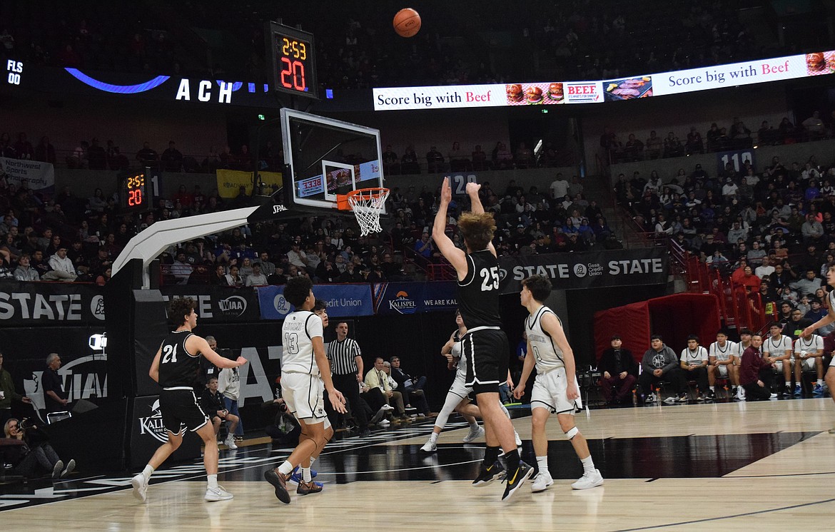 SPOKANE – The Spokane Arena was roaring; the score was 50-49 for Almira-Coulee/Hartline with less than a minute left in the fourth quarter. Despite ACH’s best efforts, the Lummi Nation Black Hawks pulled ahead with less than 60 seconds left, winning the championship game with a score of 53-50.