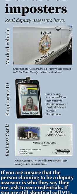 Foreman is referring to a situation in December of 2017 in Ephrata. Someone was impersonating a Grant County Assessor, pretending to be an appraiser from the office and asking to be let into homes.