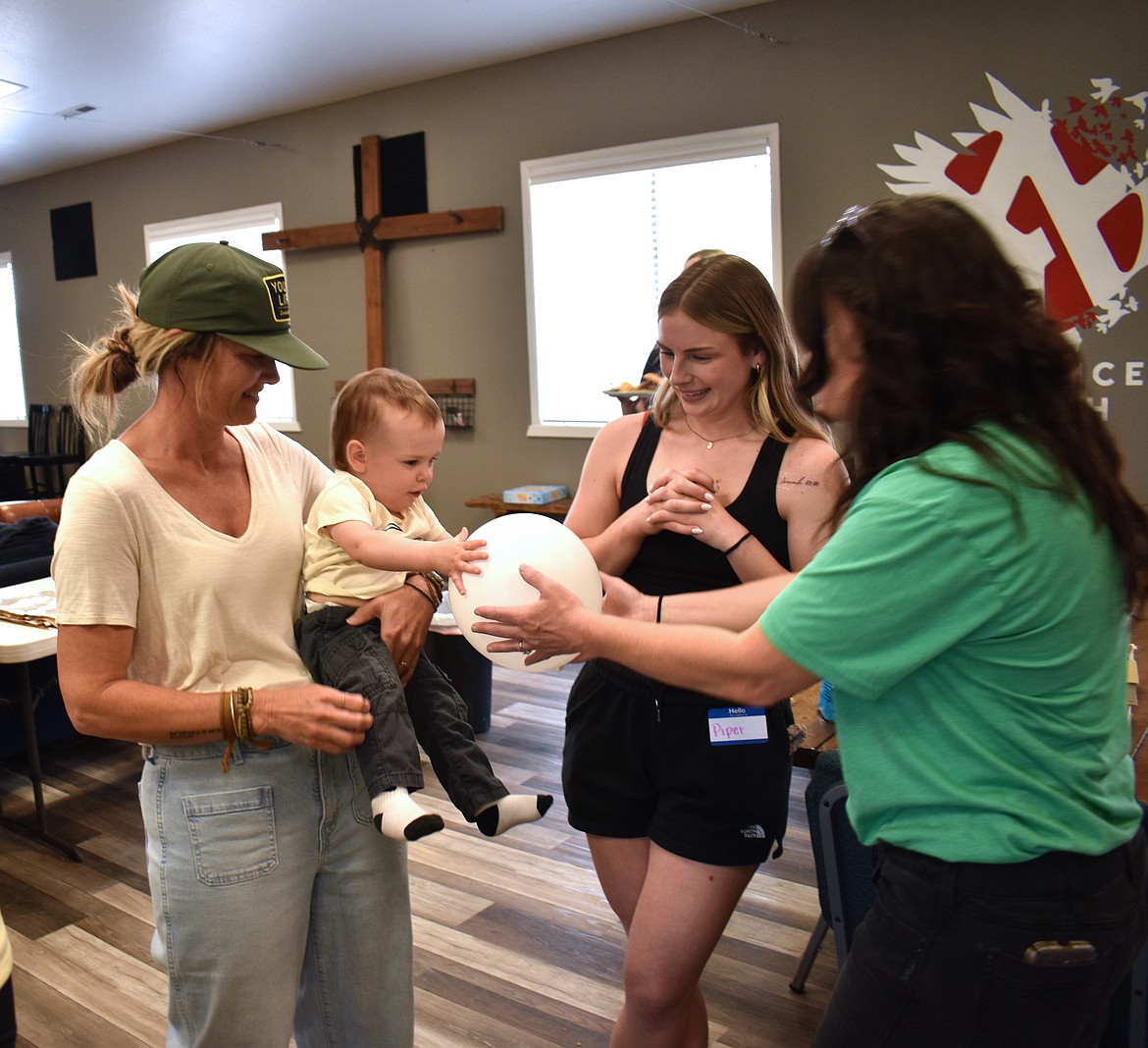 One girl besides Razo was pregnant at the gathering Thursday, and the others had their babies with them. One-year-old Porter had the time of his life playing balloon catch with YoungLife staffers Lisa Naydenov and Kelly Wemp while his mom, 19-year-old Piper Bradshaw, socialized with her peers.