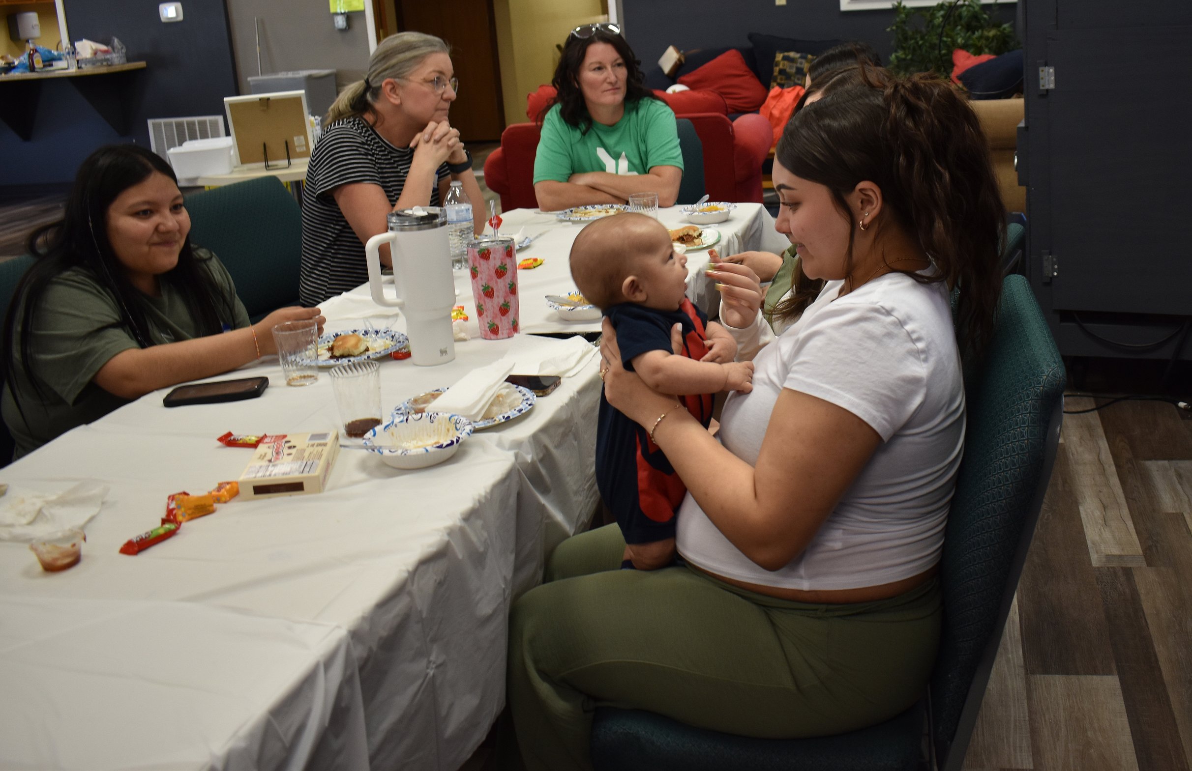This is only YoungLives’ third monthly meeting in Moses Lake, Wemp said. The first meeting only one mom came, she said, and the second had six, plus a dad. Thursday night’s meeting had six or eight moms, some pregnant, some with their babies, plus both teens and adults who were there to support them.