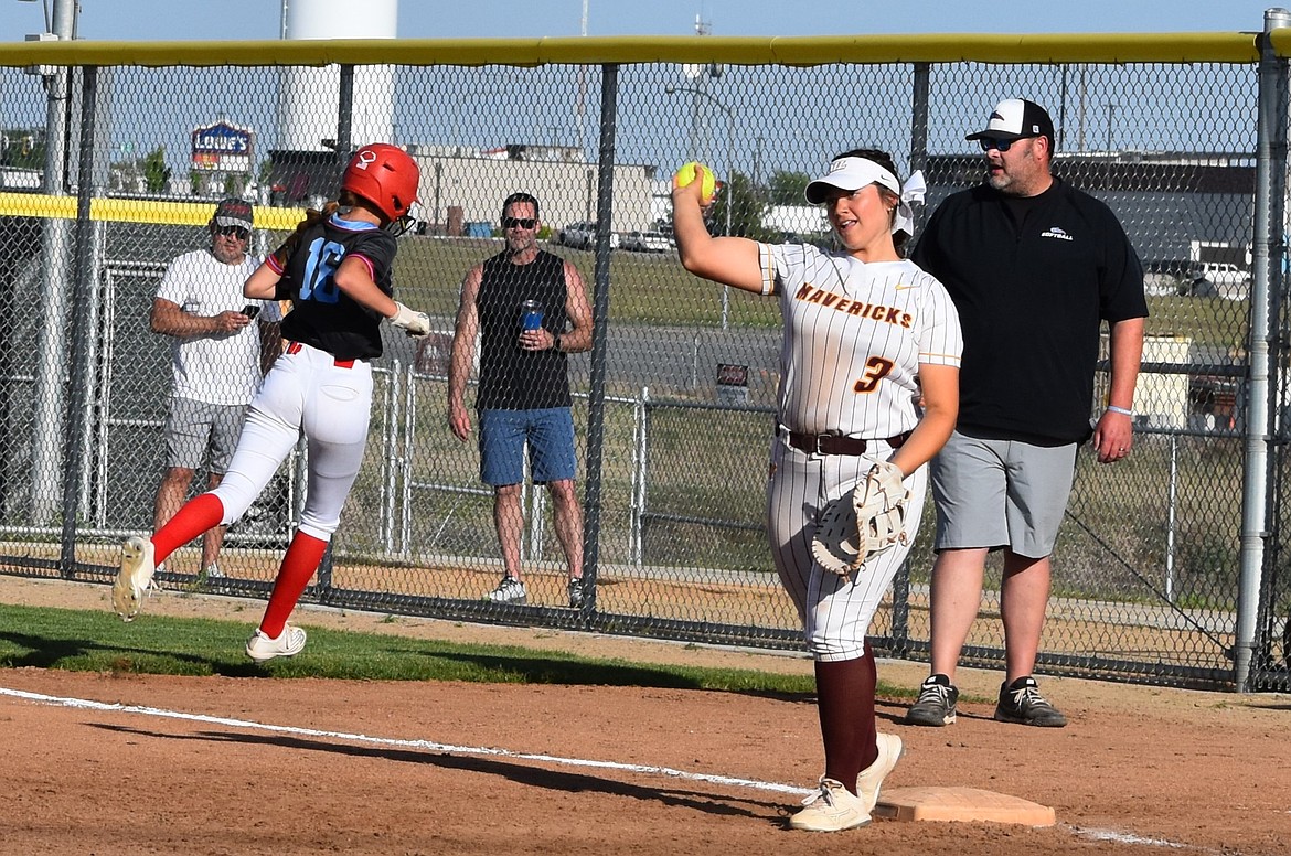 MOSES LAKE — The Moses Lake Mavericks softball team split their doubleheader against Eastmont on Friday, winning their first game 9-6 and losing the second 3-13.