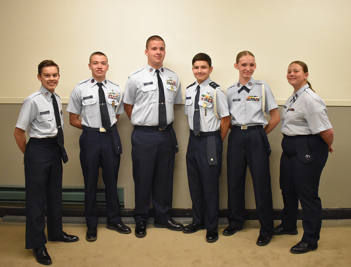 This year’s color guard team consists of Chief Master Sgt. Jaxon Fortner, Miller, Chief Master Sgt. Teagan Baysinger, Chief Master Sgt. David Lyon, Senior Master Sgt. Victor Manthey, Master Sgt. Elijah Nobleblood-Cabrera and Master Sgt. Maddy Drake. This will be the first year for Drake and the second year for the rest of the team.