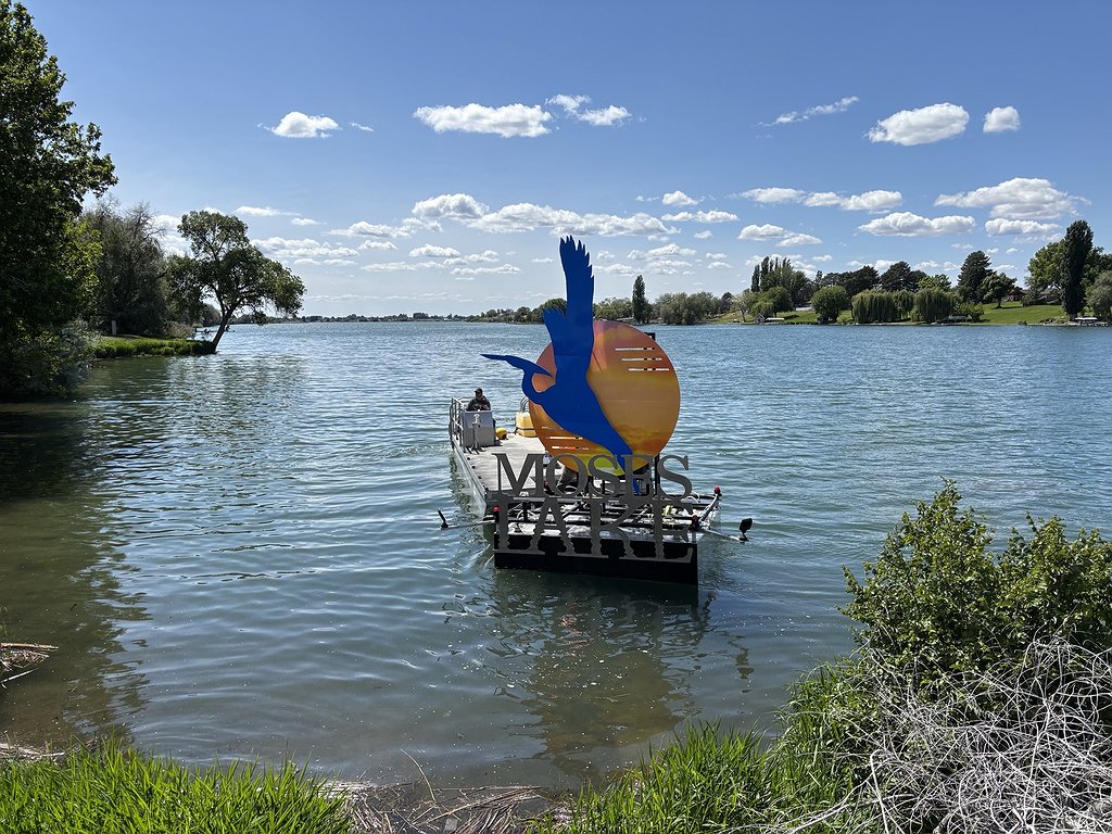 Moses Lake Steel Supply donated materials, Coutts said, and Platt Electric Supply and Pro Electric and Controls provided the electrical work. City officials decided not to paint it, opting instead for a wraparound provided by Signs Now. Pro Rentals and Sales donated the use of equipment to get the fountain in the water. Coutts also credited city workers for their help.
