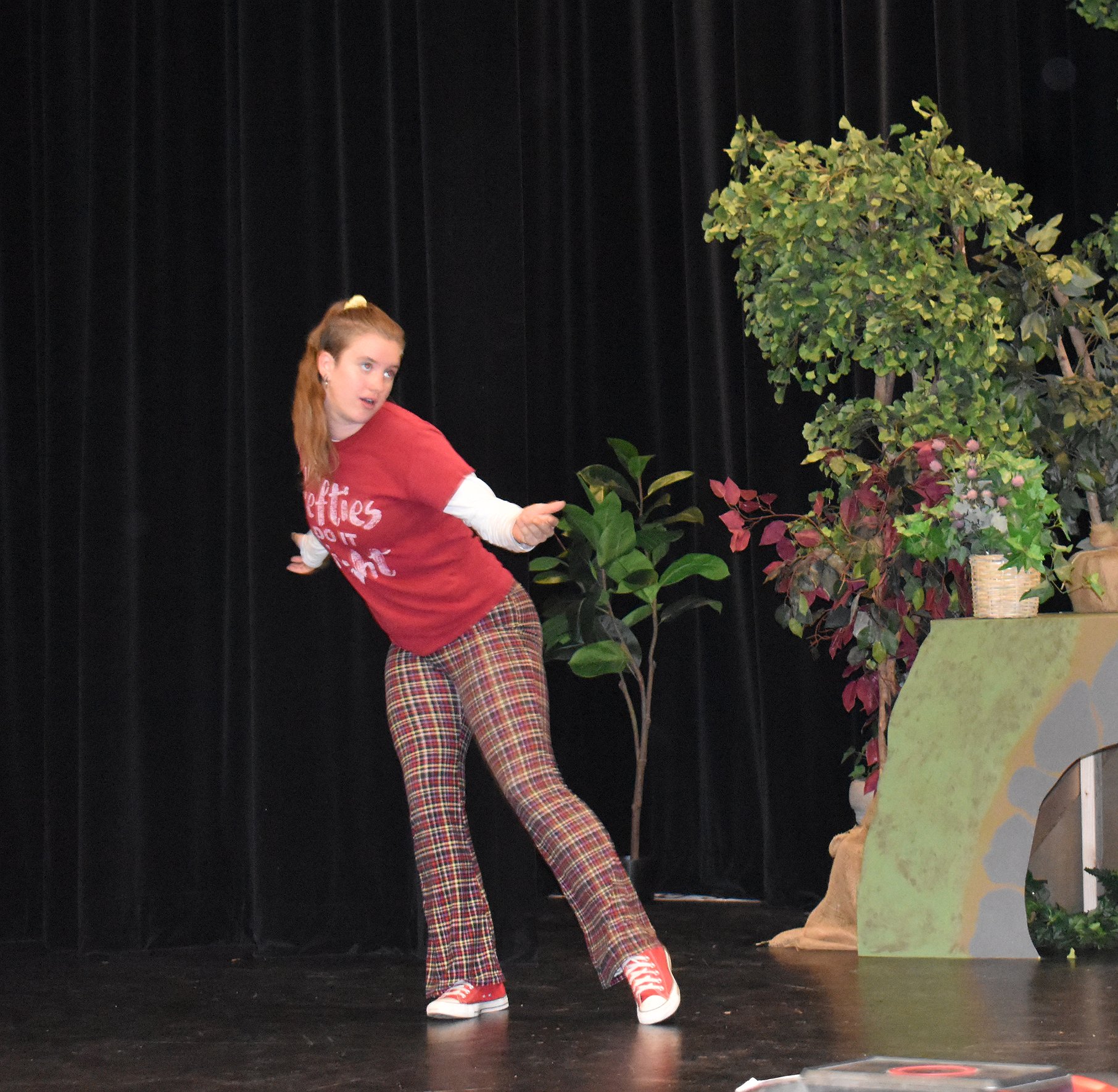 The script is a little bit modified to shorten up some of the long monologues, Christensen said, but it’s still the classic Shakespeare comedy. Queen Titania (Lillian Spurgeon) and King Oberon (Josh Cerrillo) who are quarreling, Lysander (Sawyer Roylance) and Hermia (Alyse Freeman) are in love. Demetrius (Radley Zurligen) also loves Hermia, but Hermia’s friend, Helena (Arielle Kaminsky), loves Demetrius. Meanwhile, local men Quince (Isaiah Terayama) Bottom (Jayden Rowley), Snout (Tyler Noble), Flute (Travis Freeman) and Snug (Anahi Guerrero) are getting ready to produce a play within the play in the queen’s honor. Once Puck the sprite gets involved the young lovers start fighting over each other’s sweethearts; the queen falls for Bottom; and Bottom grows the head of a donkey on his shoulders. It’s a comedy, so everything turns out all right in the end, but the twists and turns that fate takes along the way have entertained audiences for centuries.