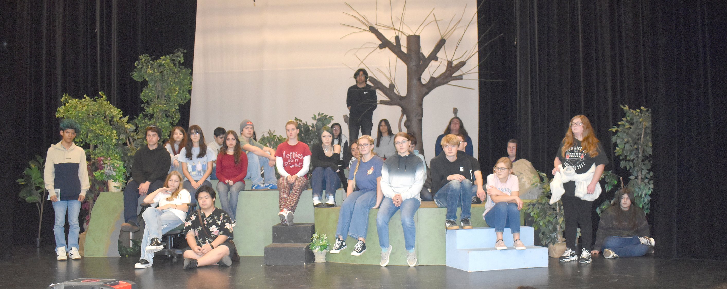 The cast of “A Midsummer Night’s Dream. Floor, from left: Kinsley Washburn, Isaiah Terayama; Row 2: Jose Reyes, Milo Gomez, Romina Pruneda, Dayna Flores, Ashlynn Bates, Lillian Spurgeon, Melia Dominguez, Adelle Walker, Hannah Freeman, Travis Freeman, Alyse Freeman, Chelsea Bunner, Anahi Guerrero; Back: Emma Stevenson, Tyler Noble, Radley Zurligen, Arielle Kaminsky, Enrique Perez, Saphira Rowe, Joshua Cerrillo, Jayden Rowley.