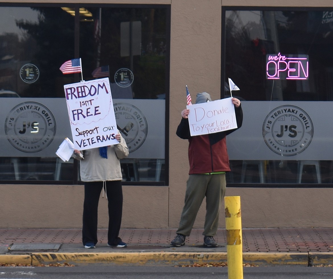 “People have a right to eat,” said Dave Hammond, who was standing on the corner holding signs that said “Feeding the hungry is patriotic” and “Donate here.” “The thing I like about this is it’s going to go to the food bank, and anybody who needs it can get it.”