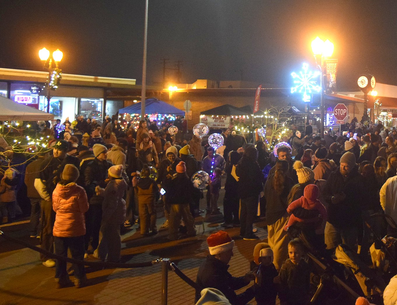 The event was helped along by lots of local sponsors, Miller said. Spokane Teachers Credit Union bought the LED snowflakes, which were installed among the traditional wreaths on the light posts downtown. Renewal by Anderson, Viking Eatery and Arrowhead Roofing also stepped up to make the occasion happen, she said.
