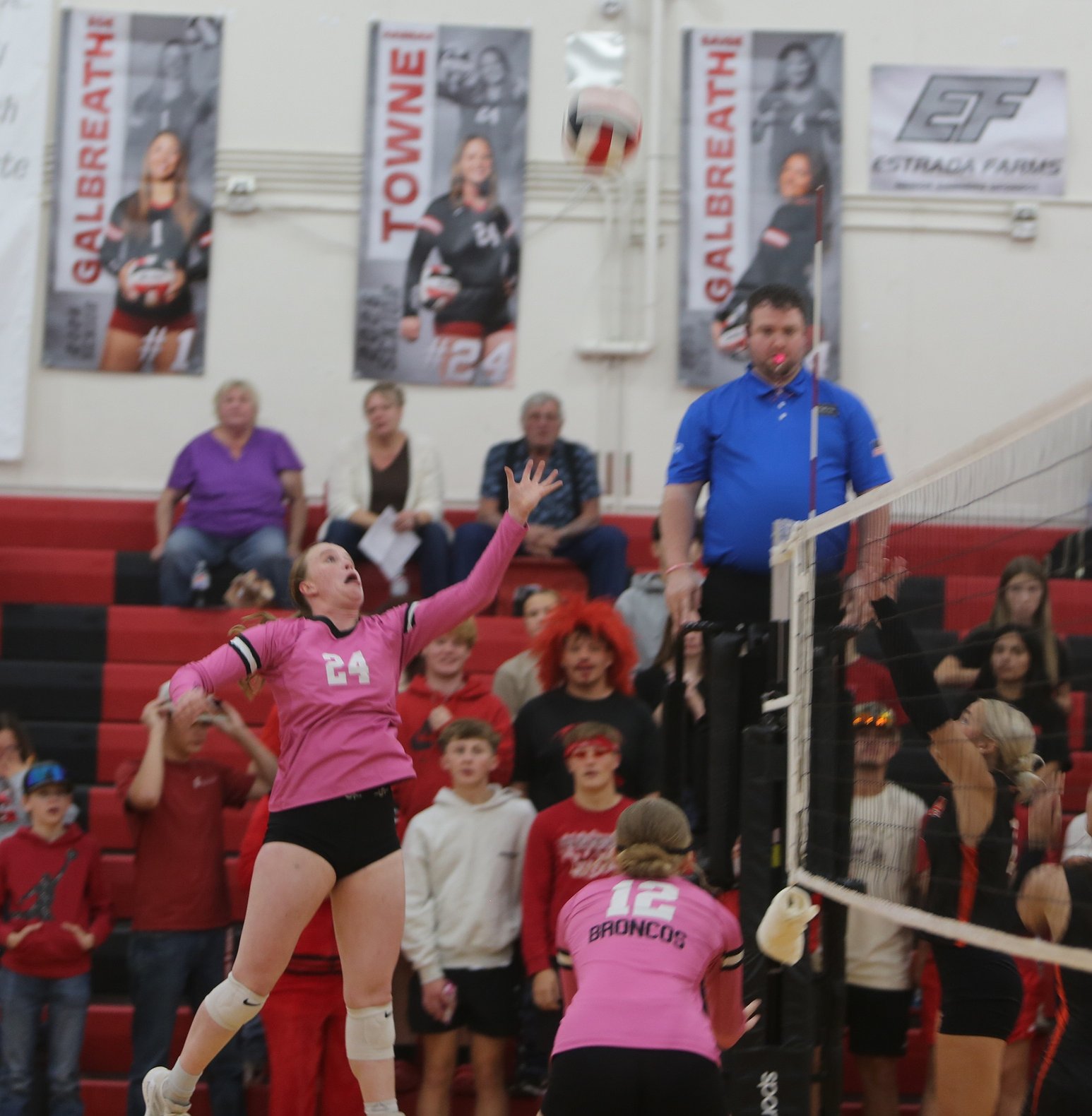 Another standout player for the Broncos was senior Hannah Towne, who has been a vocal leader this season. Galbreath pointed to the positive energy that Towne brings to the court. Throughout the game, Towne called out plays to her teammates and was the first to run up to them after a score.