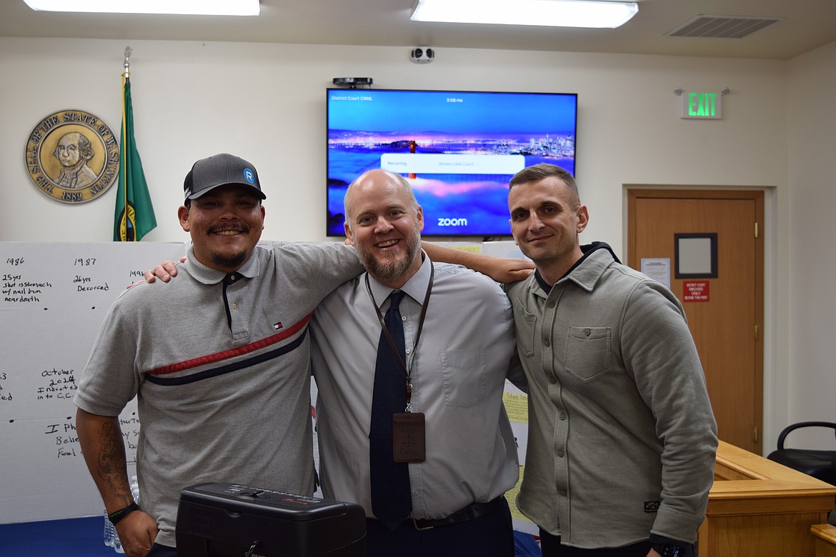 MOSES LAKE – Two participants in Grant County’s Community Court Program graduated Wednesday afternoon after completing addiction treatment and other steps to walk away from drugs and the poor decisions they can lead to. In the case of Sherm Rowland, the graduation is a walk away from a trying past and a celebration of just more than 18 months of being off drugs.
