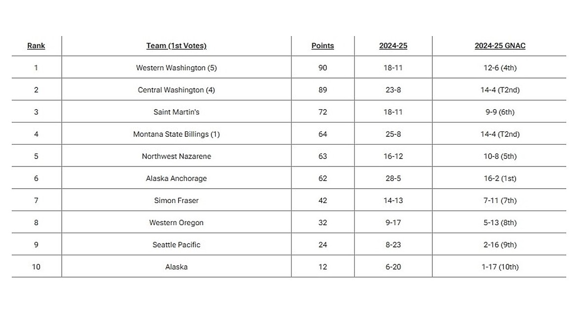 ELLENSBURG — On Oct. 14, the Greater Northwest Athletic Conference announced its preseason poll for the upcoming women’s basketball season. The Central Washington Wildcats were voted the second-best team in the conference and received four first-place votes, according to the statement by GNAC.