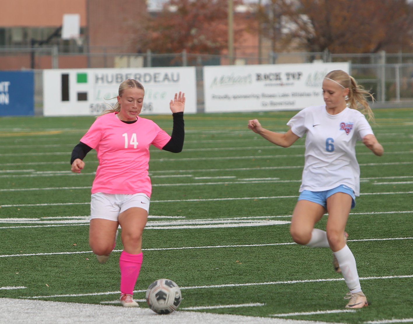 The Mavericks came out aggressively to maintain control of the ball in the first half. Kamery Char, Lindsey Davis, Miciah Higley and Mikayla Sawyer brought consistent defensive pressure whenever West Valley had control of the ball. The Mavericks' imposing defense created an opening for Davis to make a run with the ball and net the first score of the game. Not long after, Davis took another shot on goal that hit the post, but Char was there for the cleanup and put the Mavs up 2-0.