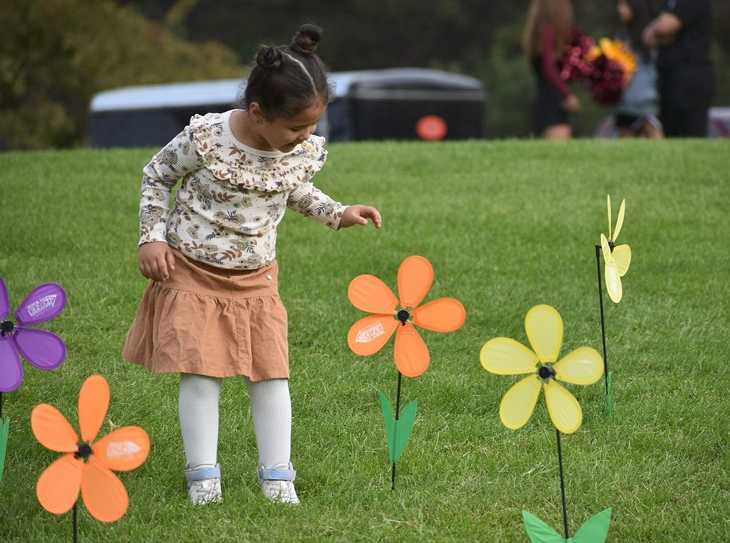 “The four colors of our flowers mean something different,” Reathaford said. “Our purple flower means that you've lost someone from dementia or Alzheimer's, and our blue flower means that you are experiencing Alzheimer's or dementia. Our yellow flower is our caregiver’s flower … and orange means that you're a supporter of the cause.”