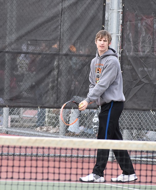 One of the closest matches of the afternoon was in the first singles match between Huskies player Max Harris and Tigers player Avery Morris. The coaches said both of these players stepped up into the first singles position with the starting players on both sides facing injury or illness Tuesday.