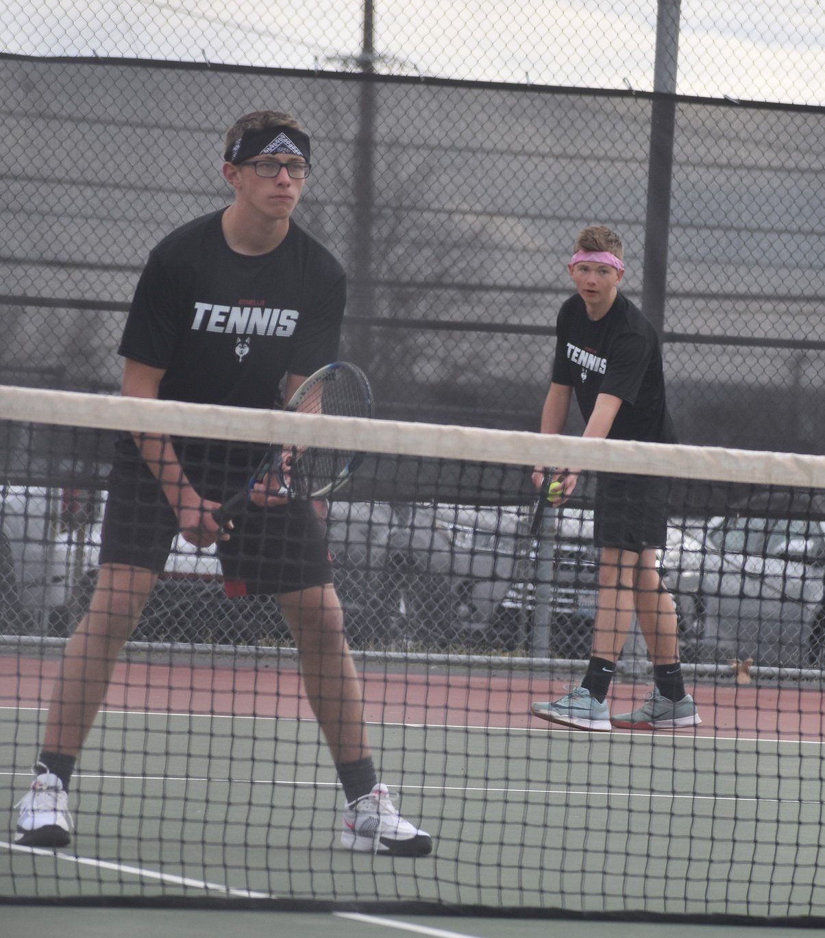 With quick victories in the second and third doubles matches, the Huskies boys claimed a full team victory.