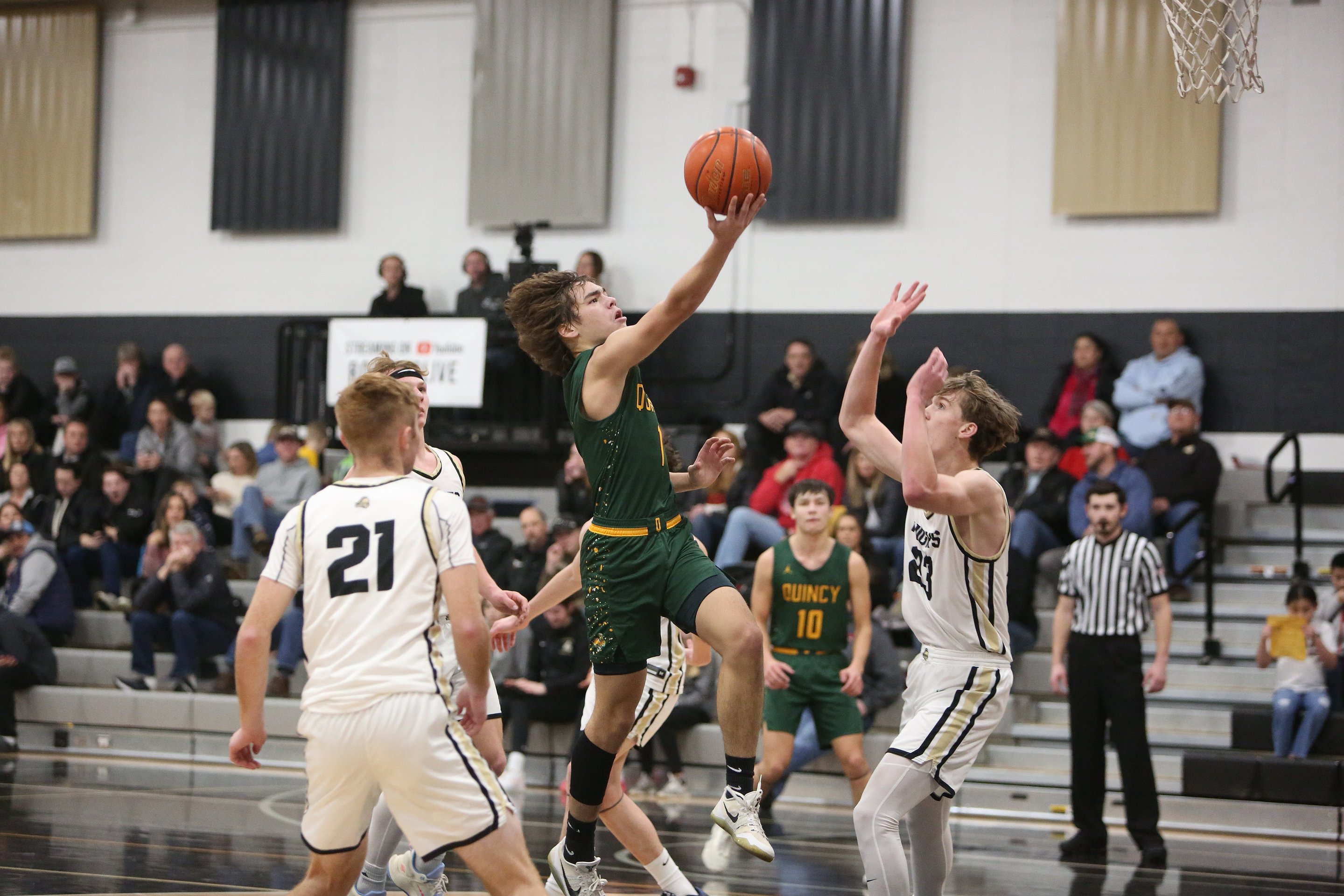 By the end of his tenure as a Jack, he was the all-time leading scorer in program history with 2,224 career points, a record that stood for 48 years, according to Scott. He’s been named first team All-League all four years, twice in the Caribou Trail League before Quincy moved up to 2A and secured league MVP his sophomore season.