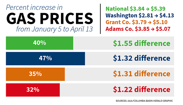 As of April 13, Washington’s average gasoline price remained $5.39 per gallon, the same as the previous week, according to AAA. In the beginning of January, prices were sitting at $3.84, which marks a 40.4% increase in fuel prices from the start of the year.