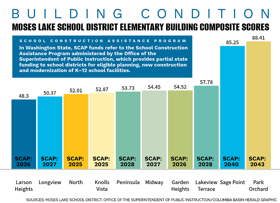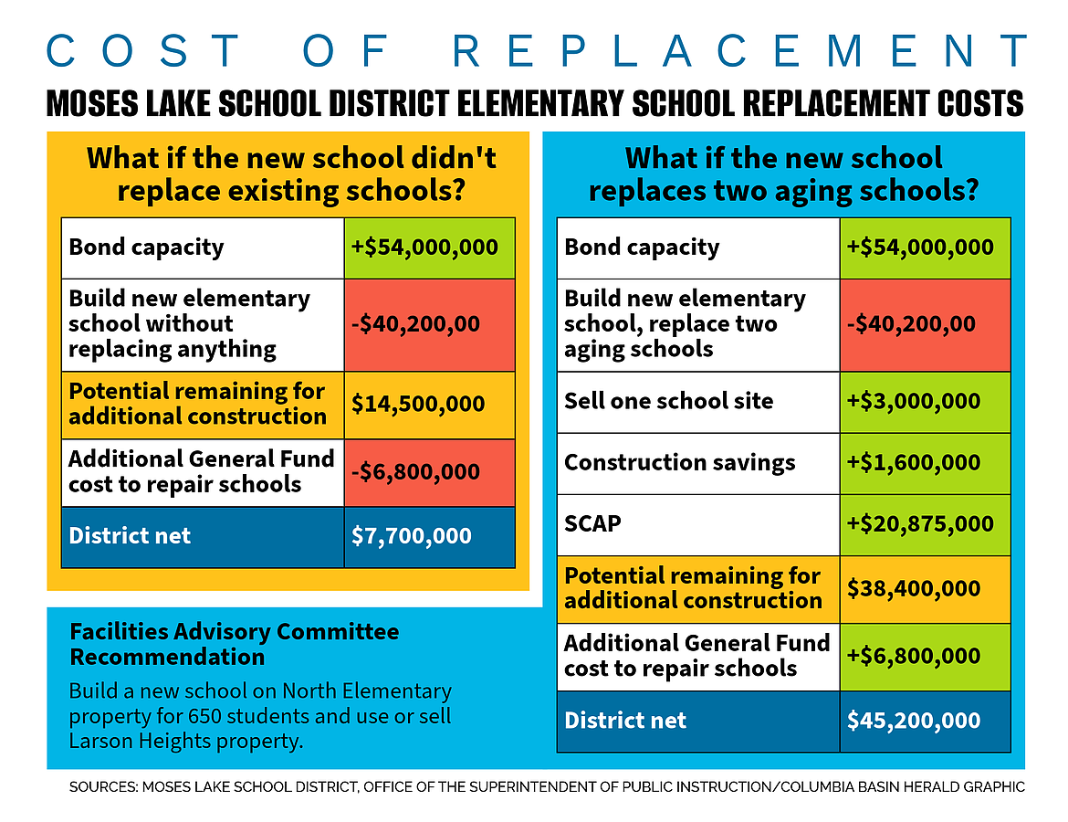 MOSES LAKE — Moses Lake School District leaders will host a community forum Monday evening to gather public input on a proposal to build a new elementary school on the North Elementary property, a project that would merge North and Larson Heights elementaries and replace two of the district’s oldest buildings.