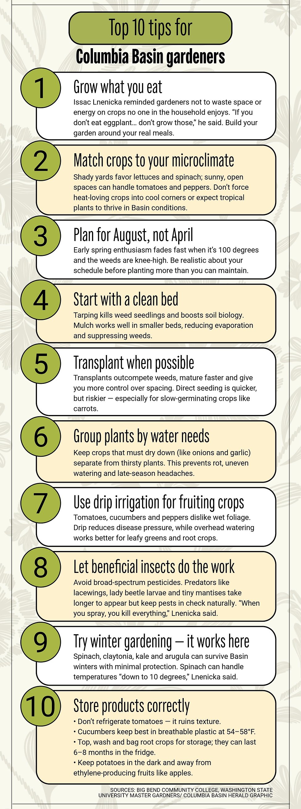 Soap Lake farmer and certified arborist Issac Lnenicka opened the day by urging gardeners to begin with honest self‑assessment: what they eat, how much time they have and what their yards can realistically support.