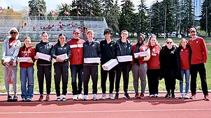 In the women’s 4x400 relay, Ellie DeGroot, Carley Huber, Donna Marie Harris, and Hopper teamed up for a first-place finish in 3:41.54. The season-best mark ranks ninth nationally and breaks their own CWU school record to place third in GNAC history. DeGroot also won the women's 400-meter hurdles in 1:00.56, while Harris placed second in the women's 400 meters in 57.78.