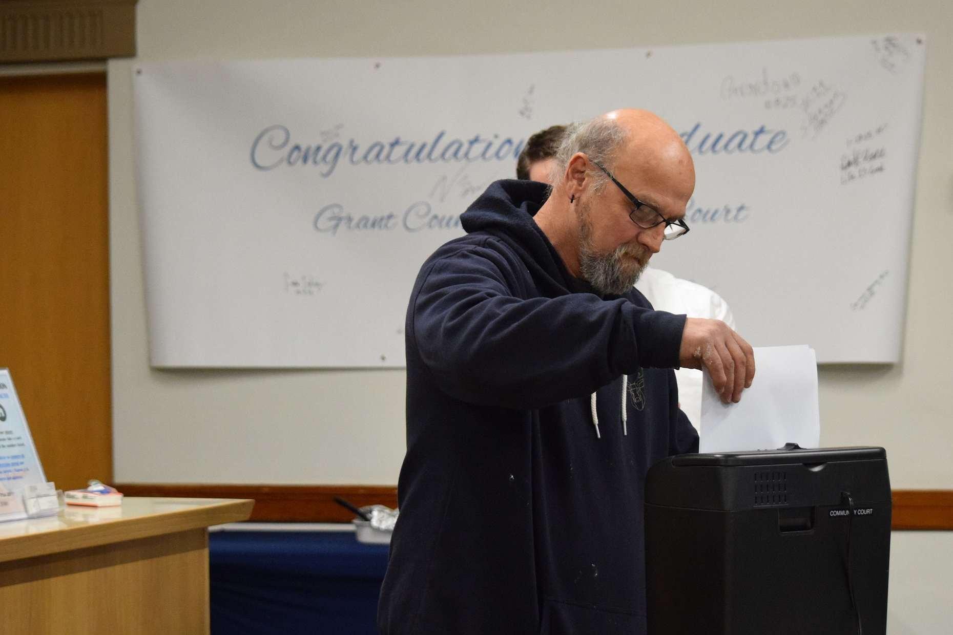 On Wednesday, he became the 15th graduate of Grant County Community Court. The court also dismissed three pending cases as part of his completion of the program. Community Court supervises defendants closely and works with them to ensure they meet standards set by the court and other stakeholders and slip-ups have consequences such as community service. Gwinn handed Metzker his three pending cases to shred as part of the ceremony.