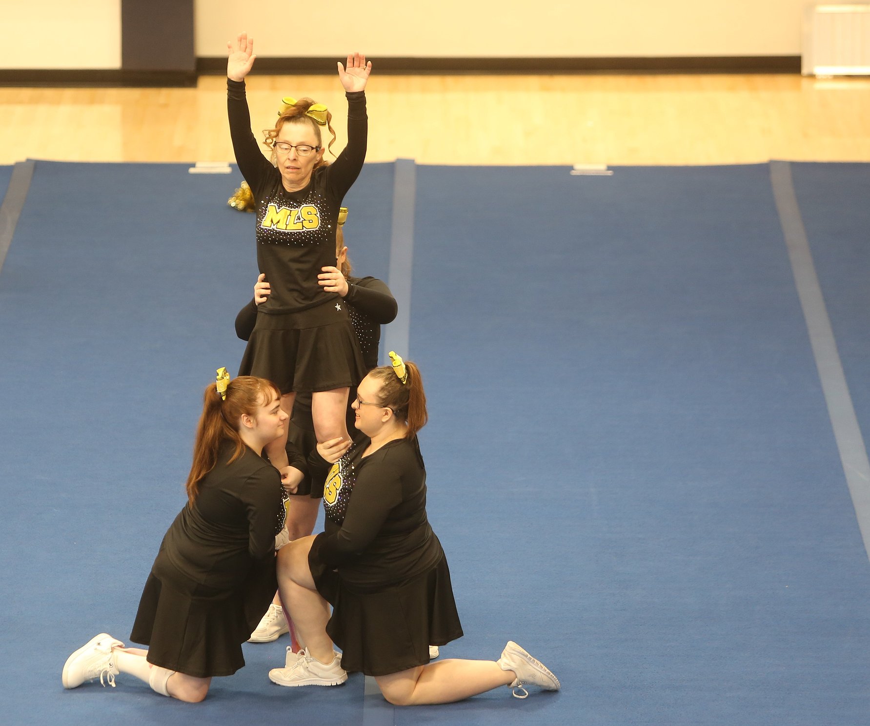 From there, they moved into their stunts, where they performed with music playing in the background. With pom poms in hand, the Scorpions brought the energy for the Moses Lake crowd as they were on their way to a gold medal.