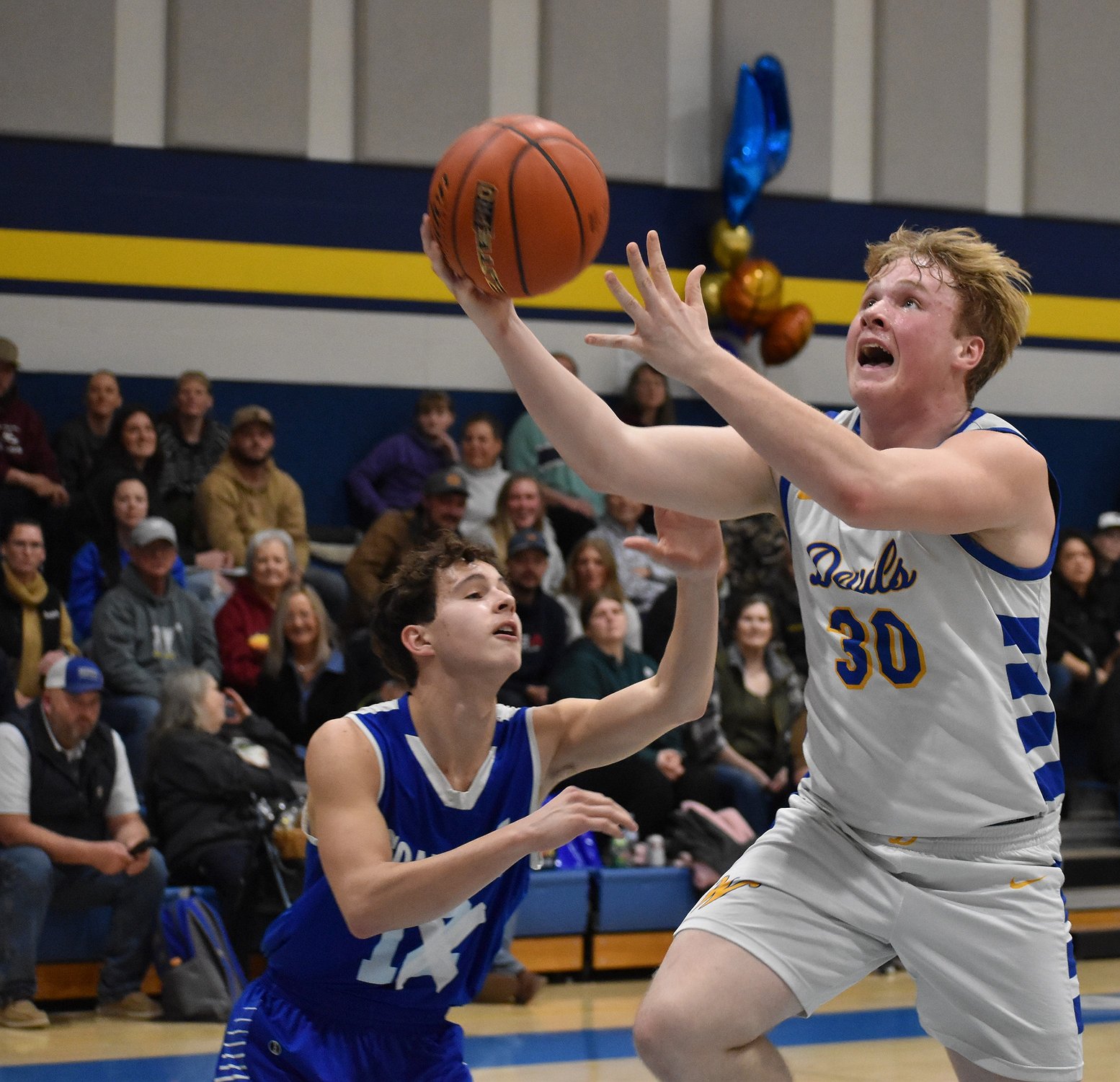 After halftime, the Devils went into high gear as they had their highest scoring quarter in the third with 18 points scored, including threes from Landon McMillan and Valline. Goloborodko scored a three for the Eagles, but the Wilson Creek defense held back Soap Lake’s push to lessen the score differential.
