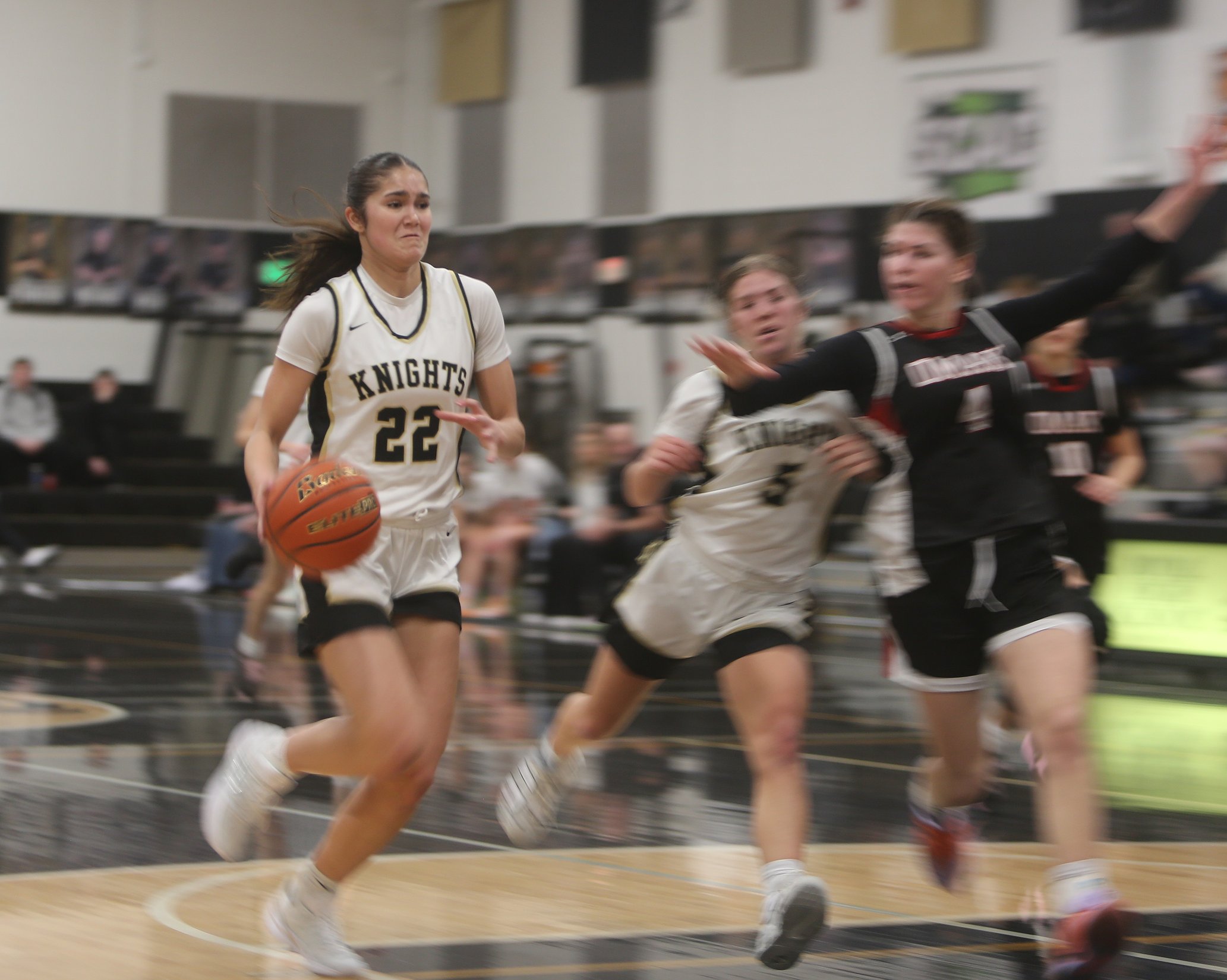 As the Knights took advantage of the Pioneers' mistakes, they swiftly built their lead. After a half-court pass from Briana Cedillo to Maggie Frank for a layup, the Knights led 19-9.