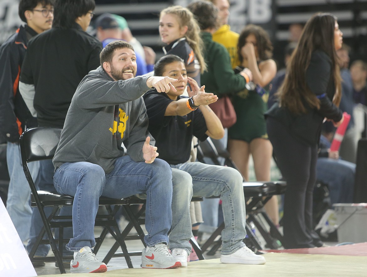 Head coach for the Mavericks girls team Tony Lee calls out to his wrestlers during a match at the Mat Classic Thursday.