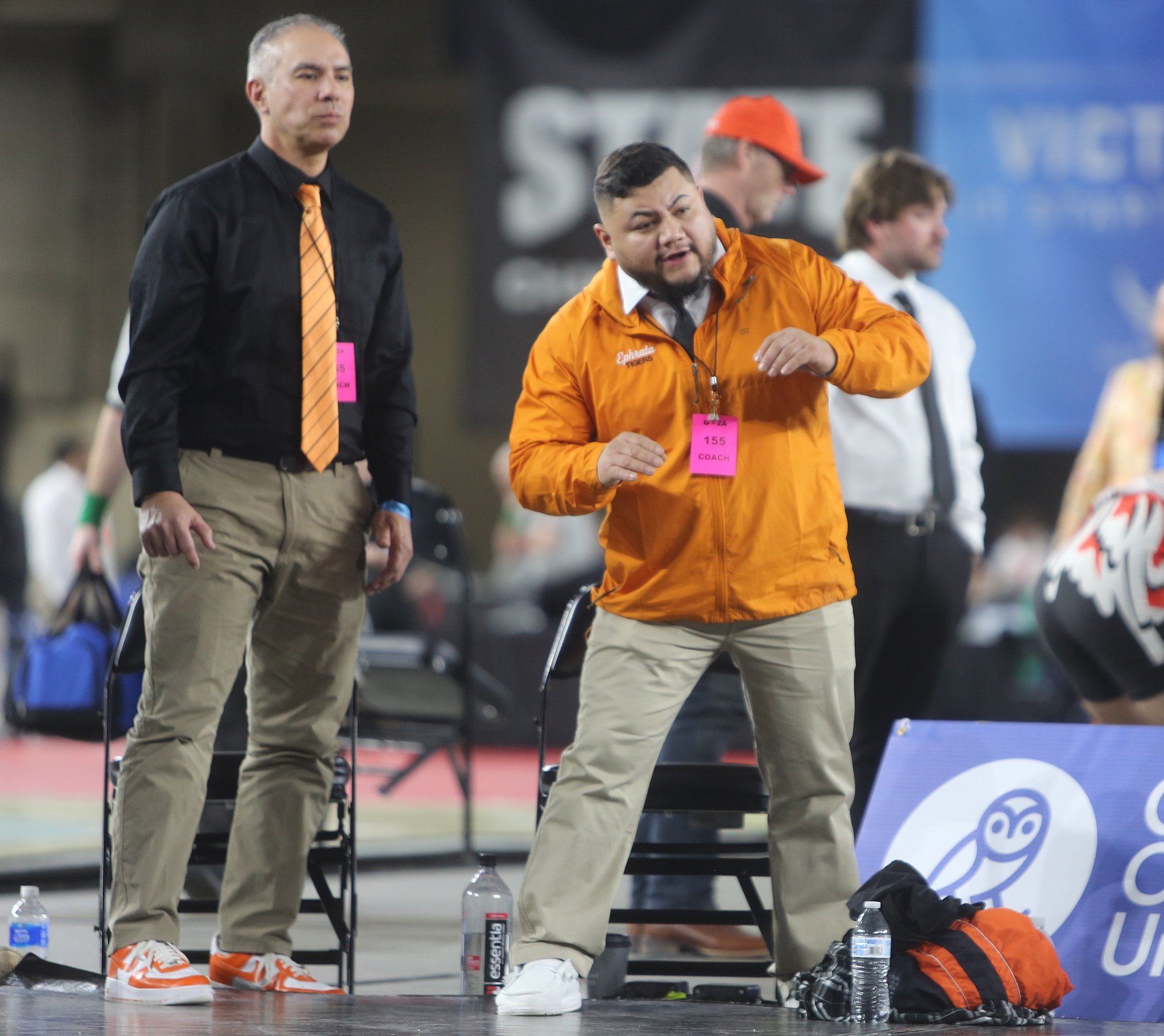 In the third period, Orgill scored a near fall to take a 3-4 lead, putting the pressure back on Sanchez. After escaping from Orgill’s grasp, Sanchez overtook her on the mat and found an opening to score a pinfall, officially claiming the state title.