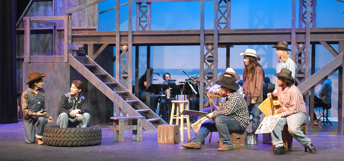The music is backed up by a live band, assembled from volunteer musicians in the community. The band is onstage throughout the play, rather than hidden away in an orchestra pit, adding to the rock-and-roll dynamic. The sets were a challenge, said Stage Manager Valeria Valladolid.