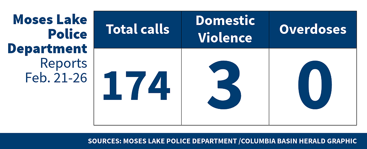 Moses Lake Police Department logs for Feb. 21-26, 2026