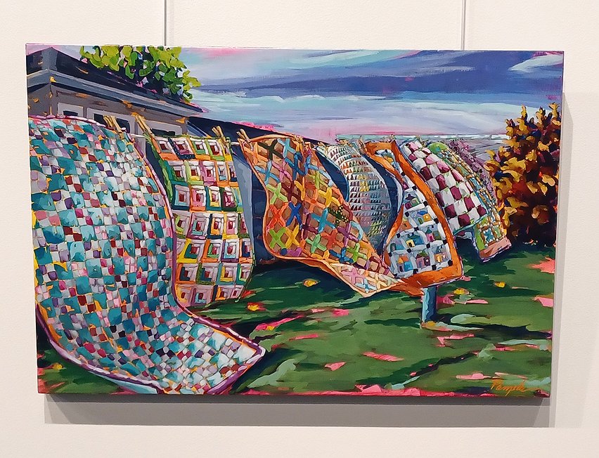 Boyd said she has a special liking for “Spring Breeze,” which shows a row of quilts waving in the wind on a clothesline.