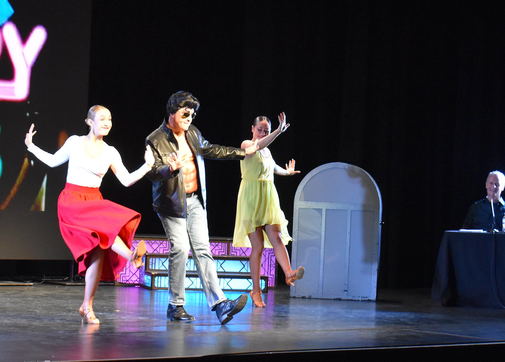 James Shank, a financial advisor with Edward Jones, did the jitterbug to the theme from “Happy Days,” clad in a leather jacket, biker boots and shades. His partner was Mandic.