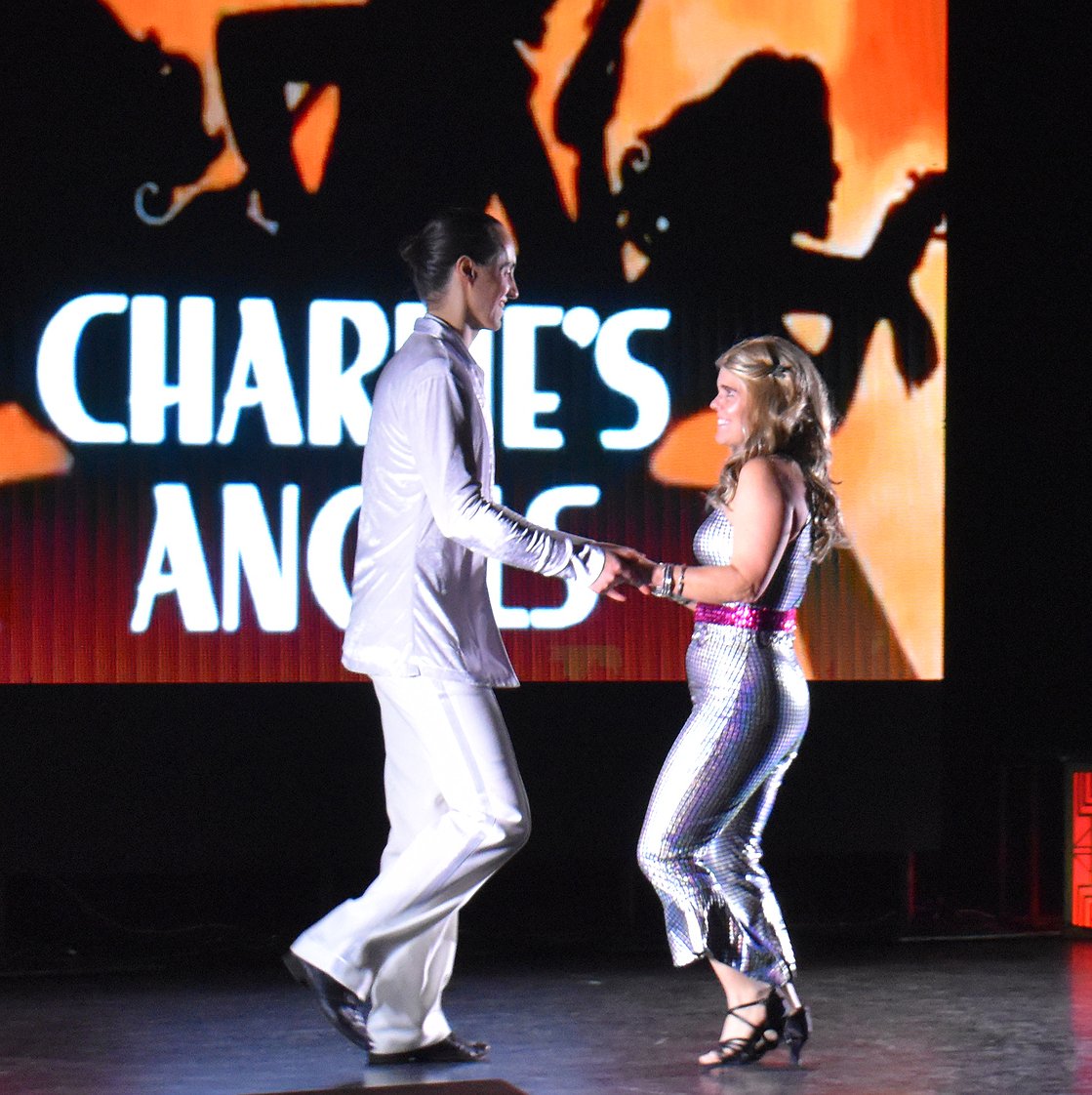 Heather Mason, owner of Mason’s Coffee, did the cha-cha with Shinsel-Frank to the theme from Charlie’s Angels, dressed in shiny silver.