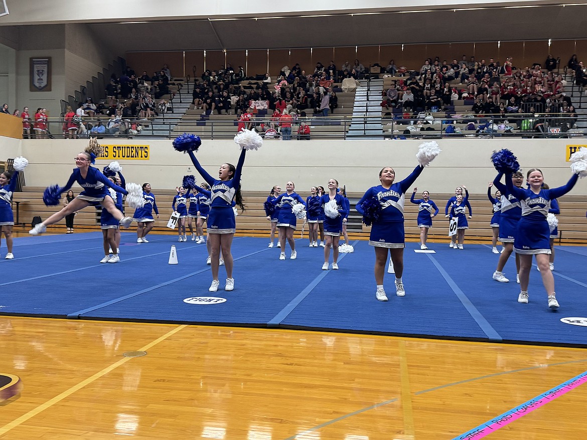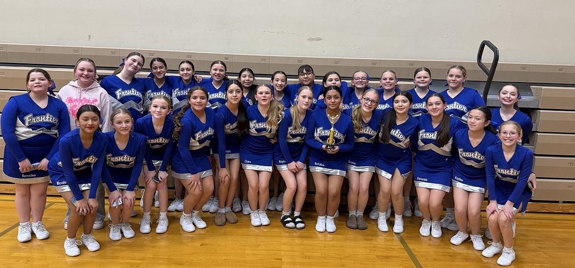 MOSES LAKE — The Frontier Middle School Spartans cheer team took first at the Battle in the Desert competition in Hanford on Saturday. Spartans head coach Kelsy Kelley said it was a long day of competition, but it was a good experience for the team as they head into the final weeks of the season.