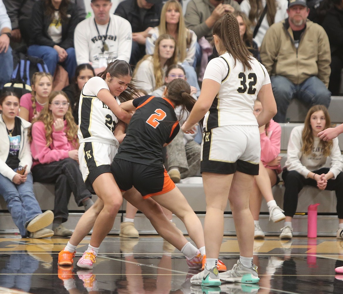 The up-tempo pace of the game was halted at the start of the second quarter after technical issues with the scoreboard. After it was reset, the game resumed as both teams put up nine points. Briana Cedillo hit a crucial three-pointer to keep Royal in the game.