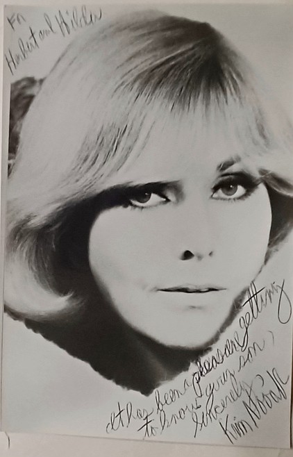 A message and signature from actress Kim Novak to Richard Black’s parents that she signed after the two worked together on a public service announcement. Richard said Novak knew his parents loved her movies and made sure he had this sent to them in Germany. The message on the photograph reads: “It has been a pleasure getting to know your son. Sincerely, Kim Novak.”