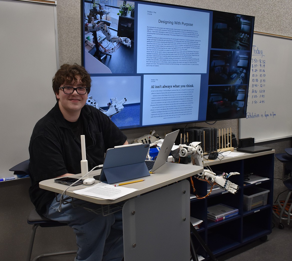 Another student project highlighted at the event was a mechanical prosthetic arm powered through ChatGPT created by sophomore Draidyn Day. The arm was programmed to make different gestures and can even create complex gestures on its own when given a prompt.