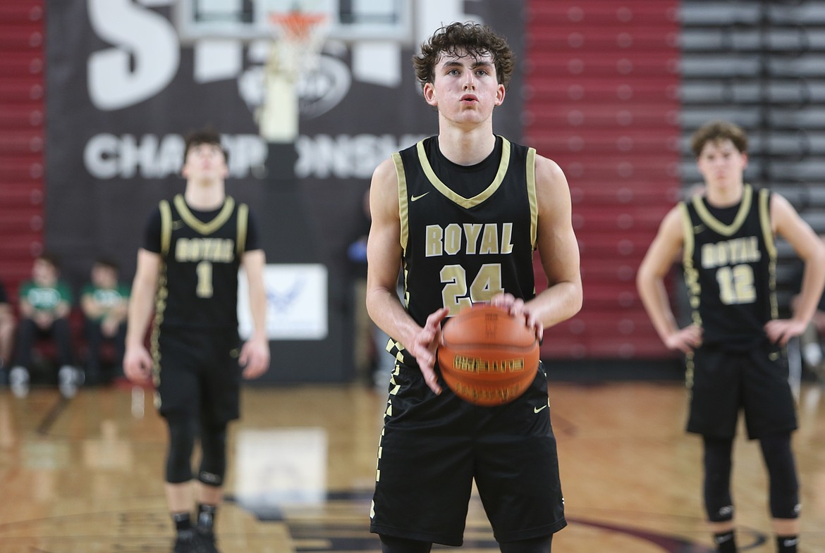 The Knights’ Grant Wardenaar takes a deep breath before shooting a free throw in the 1A state semifinals against Zillah Friday. Wardenaar scored 25 points for the Knights.