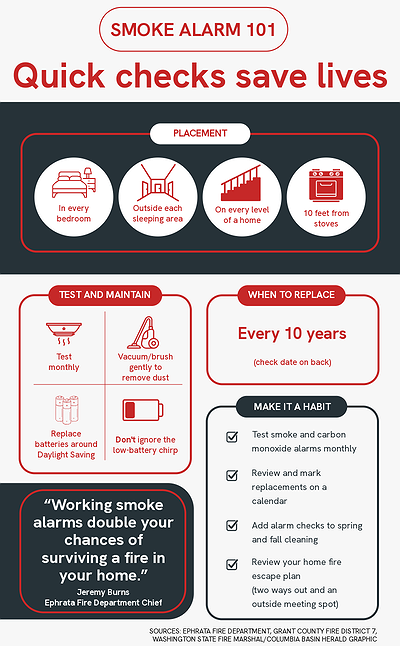 EPHRATA — The first warm days of March tend to nudge people toward open windows, fresh air and long‑delayed chores. As closets are emptied and garages are sorted, local fire officials say spring cleaning is also the perfect moment to tackle a few safety tasks that often get overlooked – ones that can prevent emergencies and even save lives.