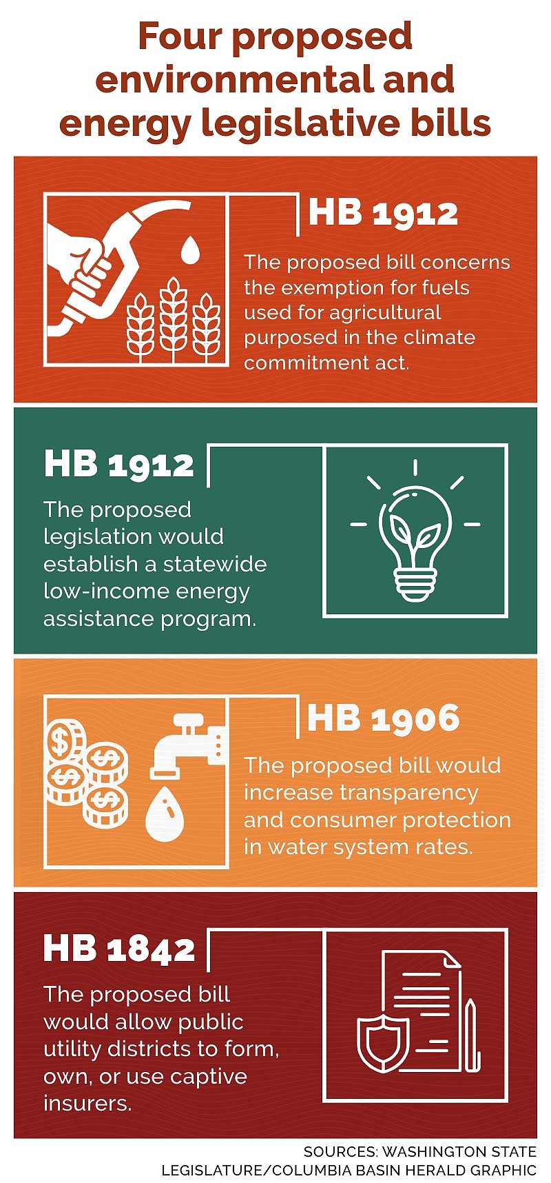OLYMPIA – The House Environmental and Energy Committee heard four proposed bills Feb. 13. The four bills, if passed, would have impacts on agriculture, low-income energy assistance, water system rate changes and insurance for public utility districts like the Grant PUD.